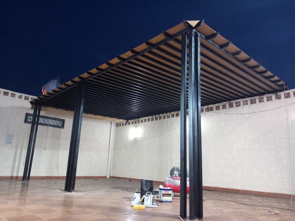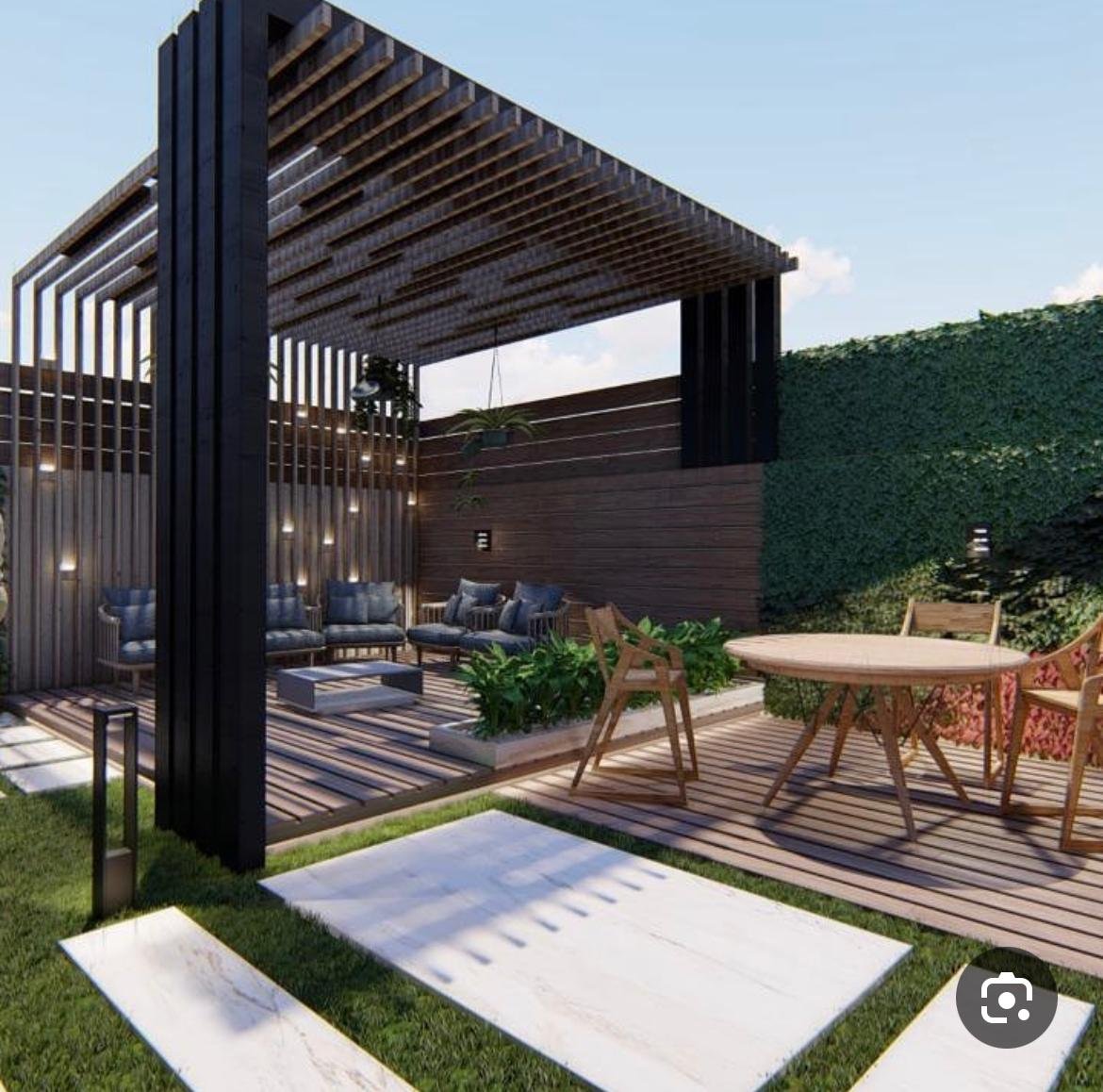 تصاميم متنوعة وعصرية: نقدم جلسات برجولات بأشكال هندسية مختلفة تناسب جميع المساحات، سواء كانت مربعة، مستطيلة، أو مقوسة.