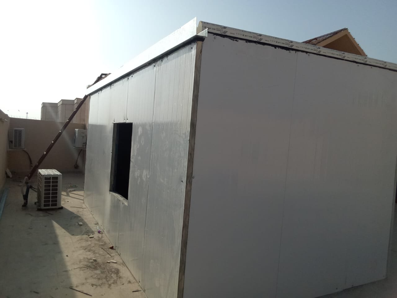 مرونة الاستخدام: يمكن استخدام الغرف كمستودعات، غرف كهرباء، مكاتب مؤقتة، أو غرف تبريد وتخزين المواد الحساسة.